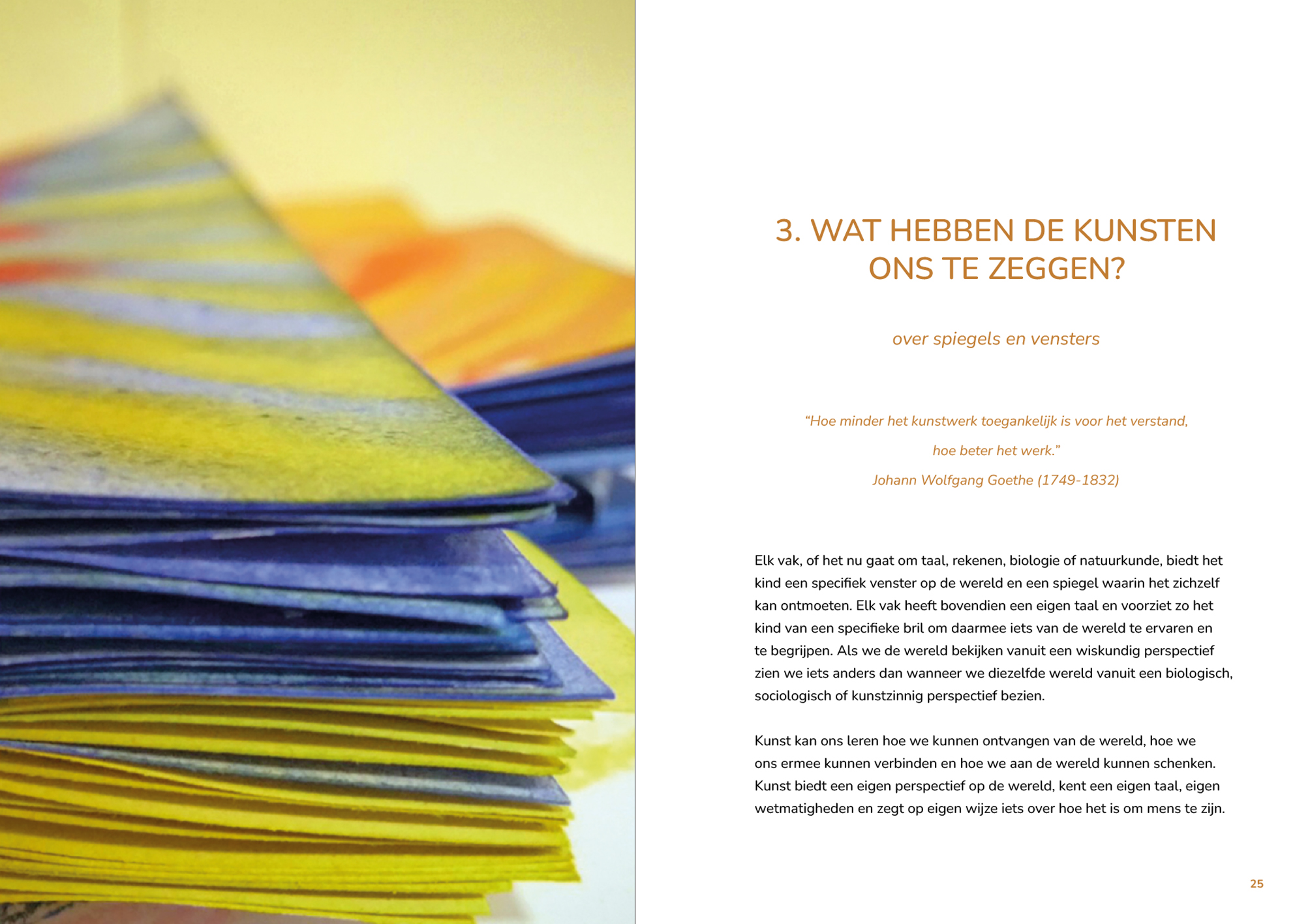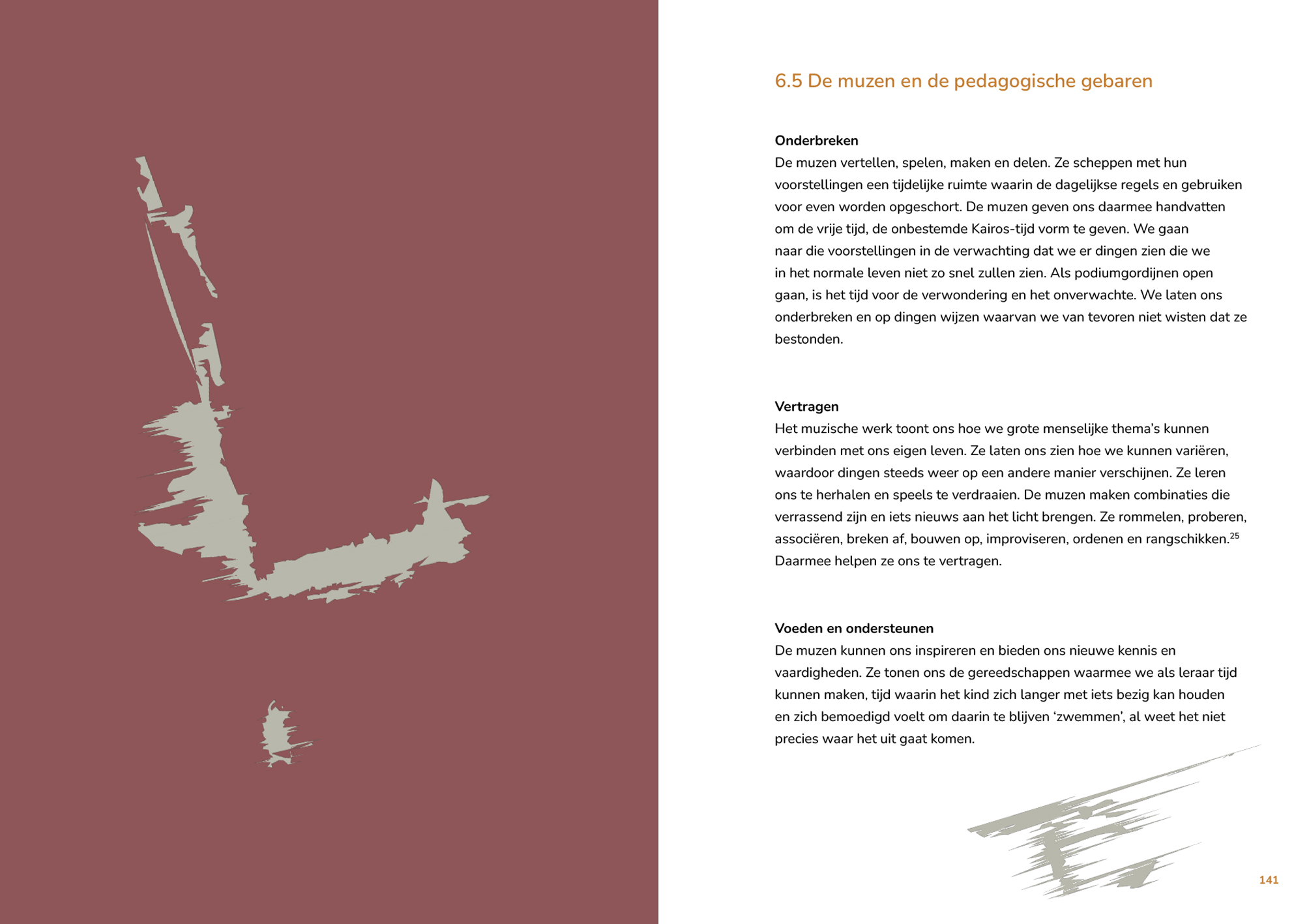 Aan de hand van de kunsten, de pedagogiek, filosofie en voorbeelden uit de praktijk laat Michiel Bos zien hoe de muzen ons kunnen inspireren tot een kunstzinnige manier van werken. Onderwijs waarbij het kind de niet alleen de wereld leert begrijpen maar er ook door gegrepen kan worden.