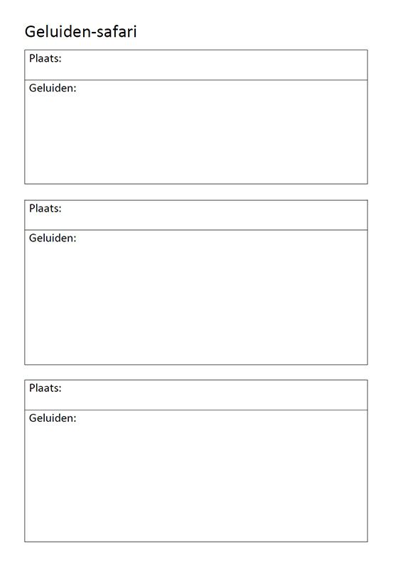 Ga met de kinderen op een plekje in de buurt van de school zitten. Geef ze ongeveer een minuutje de tijd om de geluiden te beluisteren en op te schrijven. Een tekeningetje mag ook.