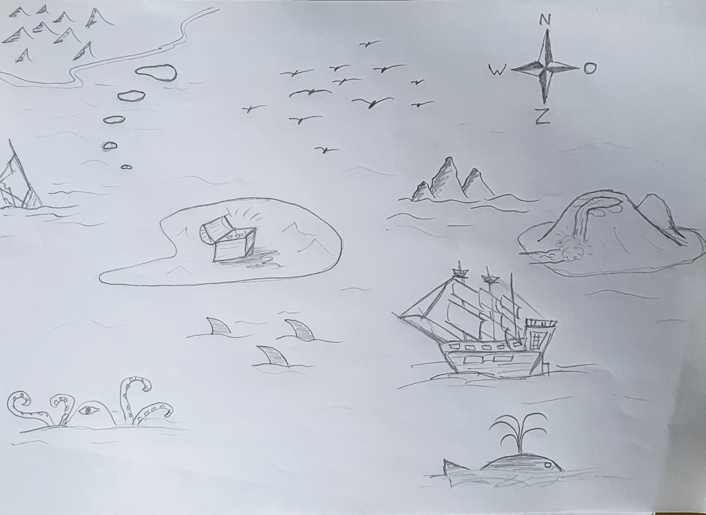 Variatie 2: Laat kinderen in groepjes een eigen zeekaart en muziekstuk maken.