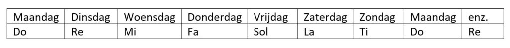 Muziek is opgebouwd uit verschillende tonen. Een reeks tonen waar een liedje uit is opgebouw noemen we een toonladder. Dat zijn meestal 7 verschillende tonen net zoals de dagen van de week: