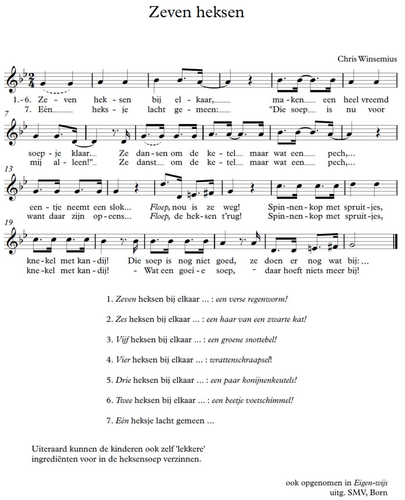 In het land waar reuzen en kabouters bestaan, heel ver van hier. Zijn zeven heksen een soepje aan het koken. Het is een heel vreemd soepjes, dat wel. En ze maken er ook een potje van! Er gaat nog wel eens wat mis. Luister maar eens naar het liedje.