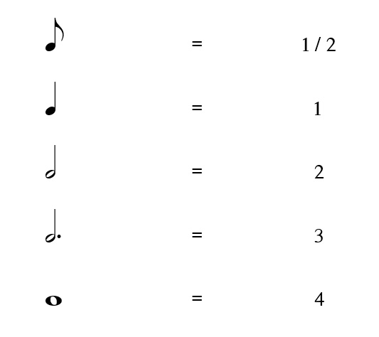 Wist je dat je kunt rekenen met noten? Bij het maken van muziek moet je goed kunnen tellen. Elke noot duurt namelijk een bepaald aantal tellen lang. En soms een halve tel of nog korter. Hieronder zie je hoe lang de noten in de 4-kwarts-maat duren.