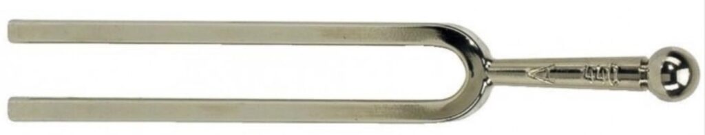 Dit is een stemvork. Deze geeft altijd dezelfde hoeveelheid herz. Kun je lezen hoe vaak deze stemvorm trilt per seconden als je een van de benen voorzichtig tegen je knie aan tikt?